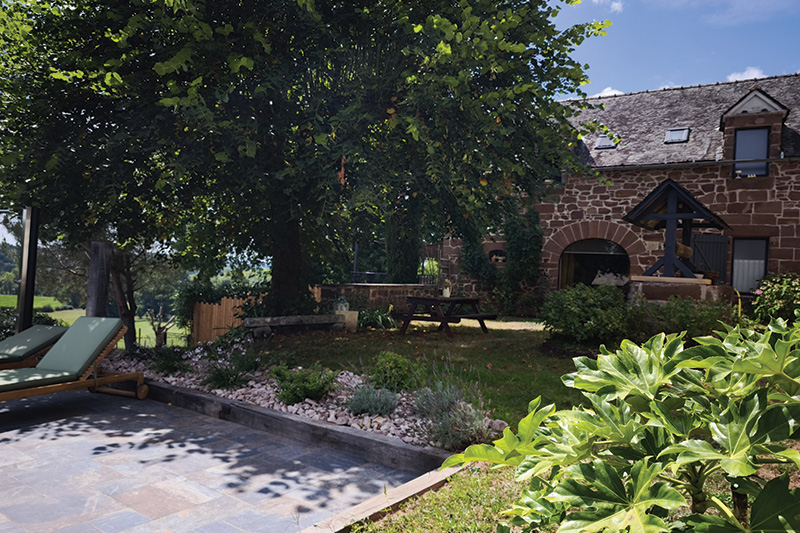 Terrasse abritée avec grande table pour vos repas extérieurs.